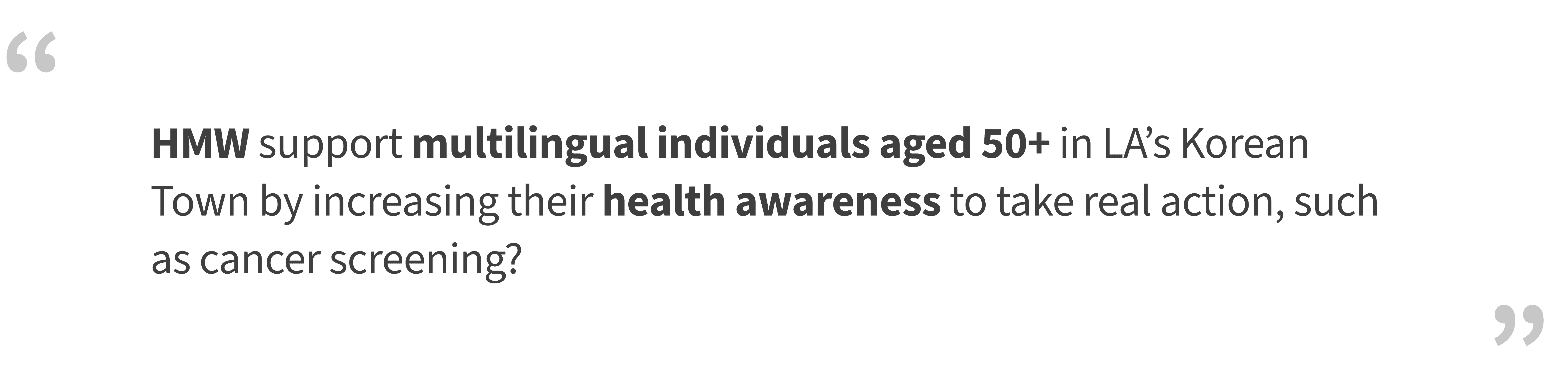 BrightCheck is a service design project that aims to eliminate cancer screening disparities in Los Angeles' Koreatown sponsored by Cedar Sinai.