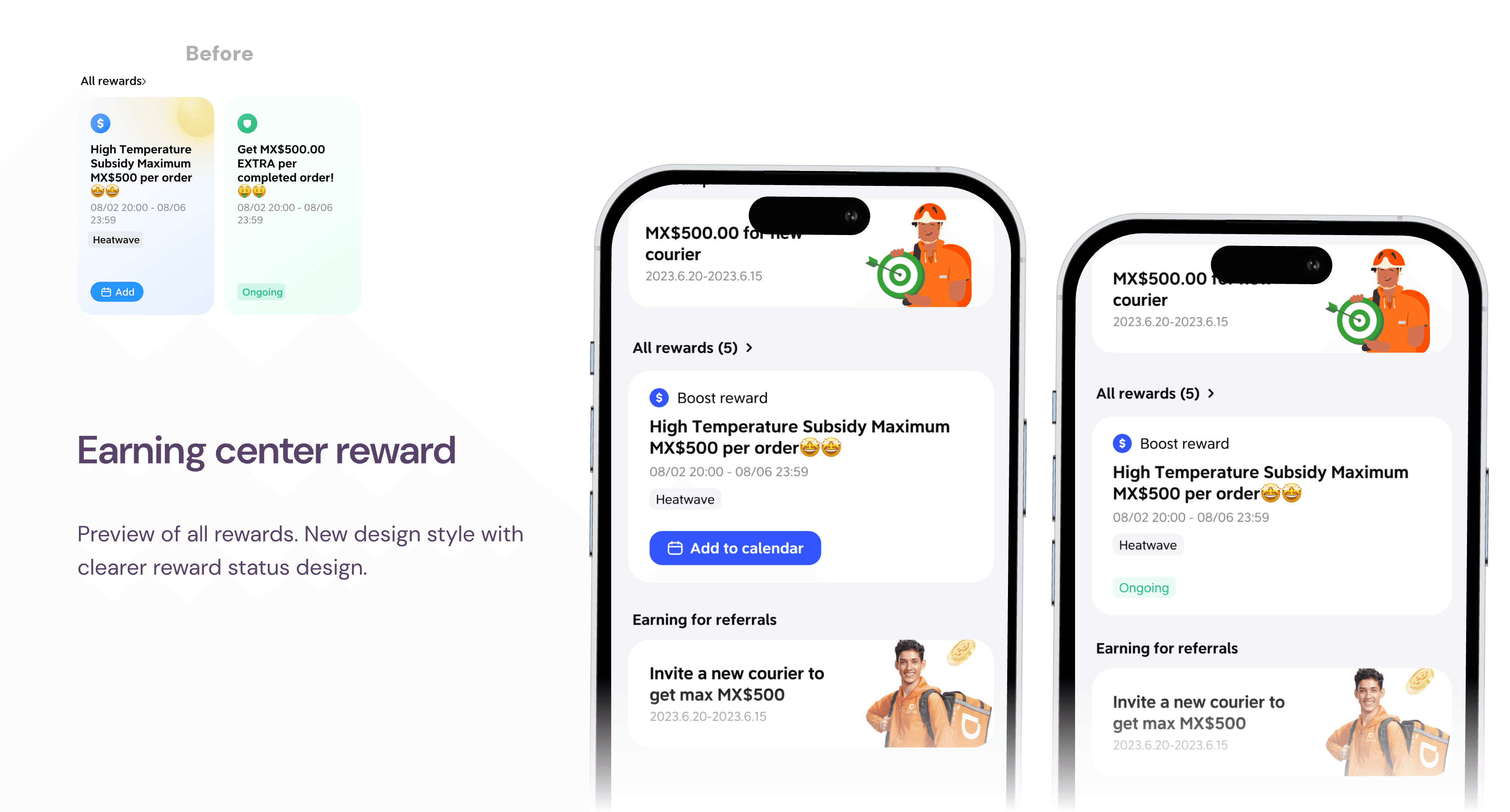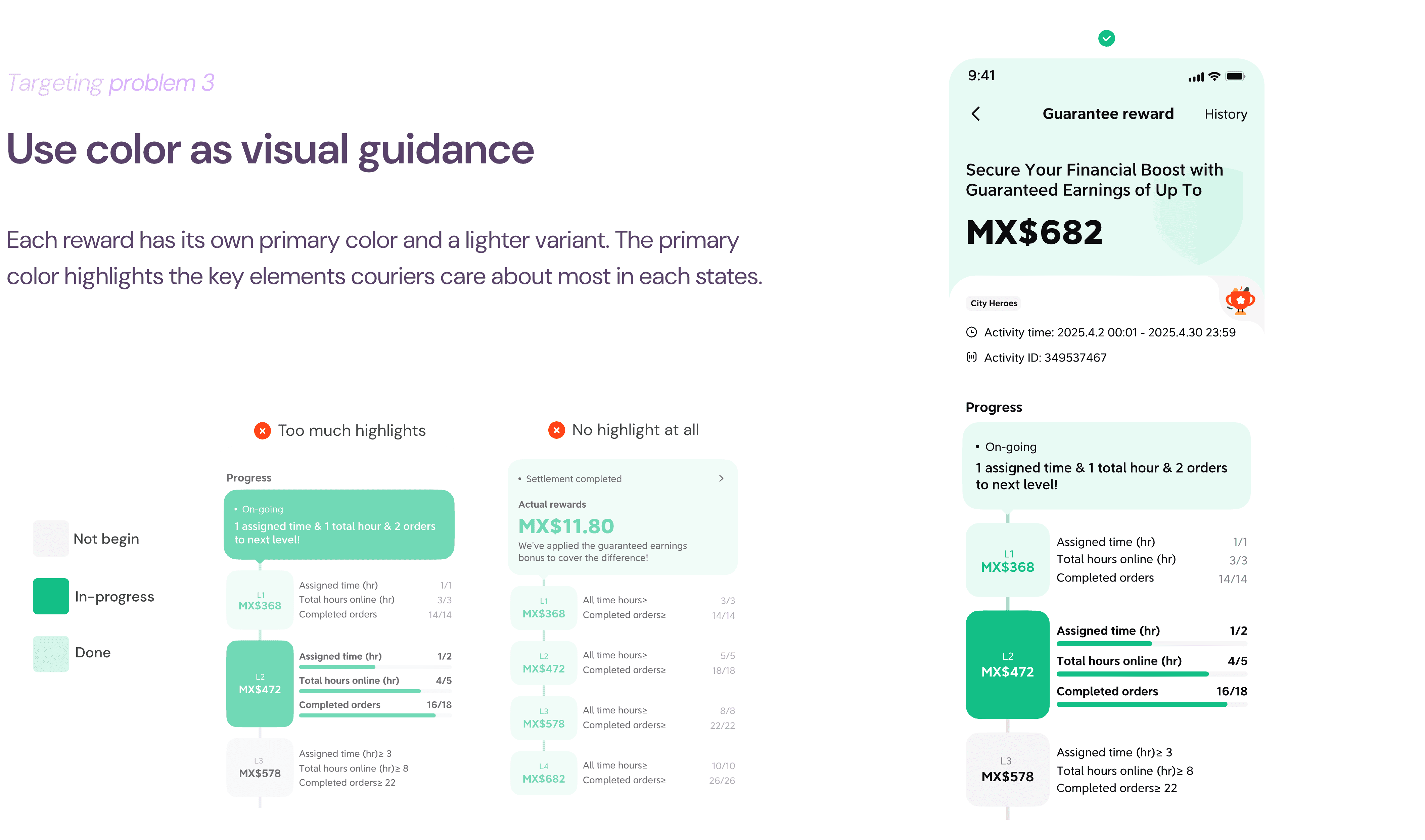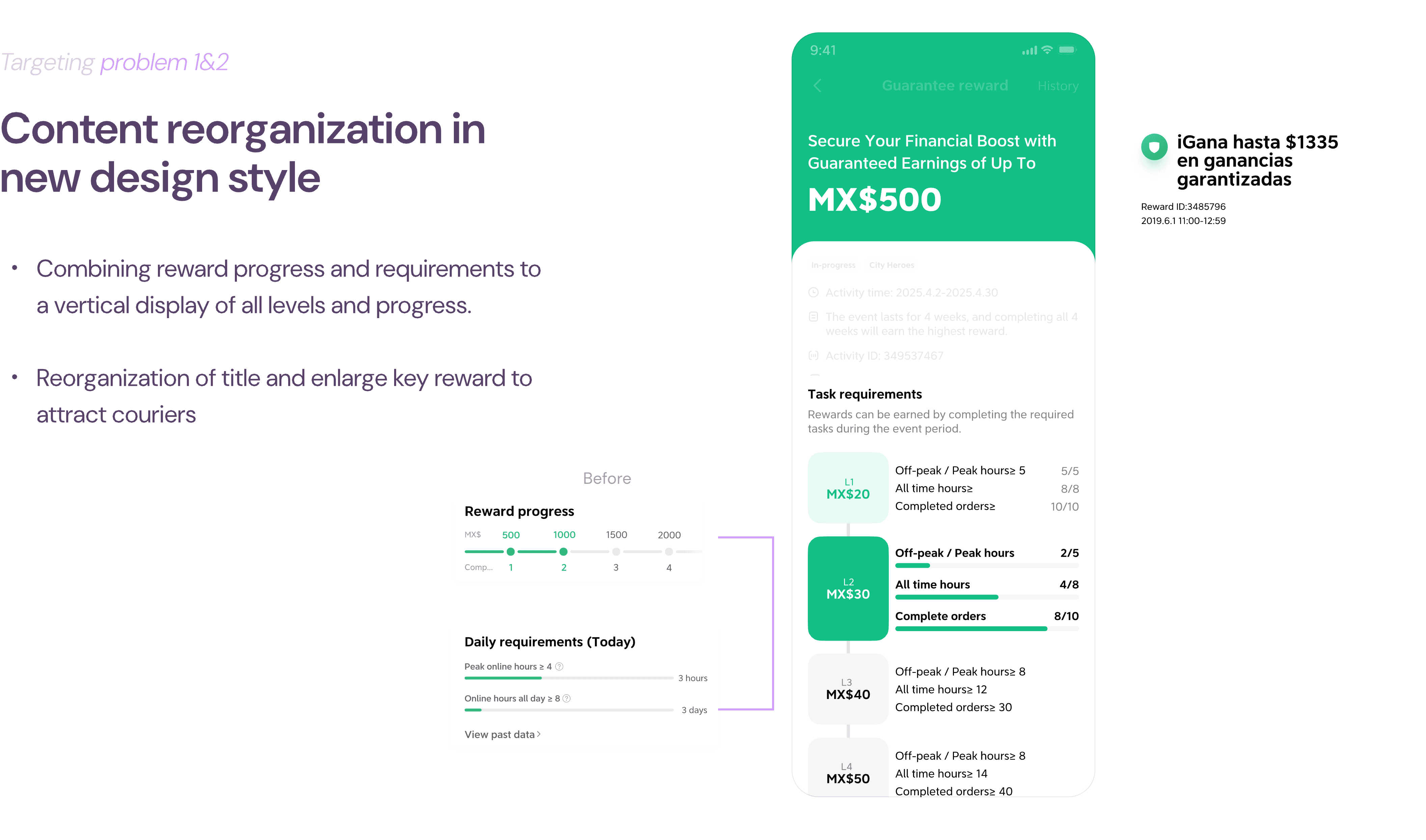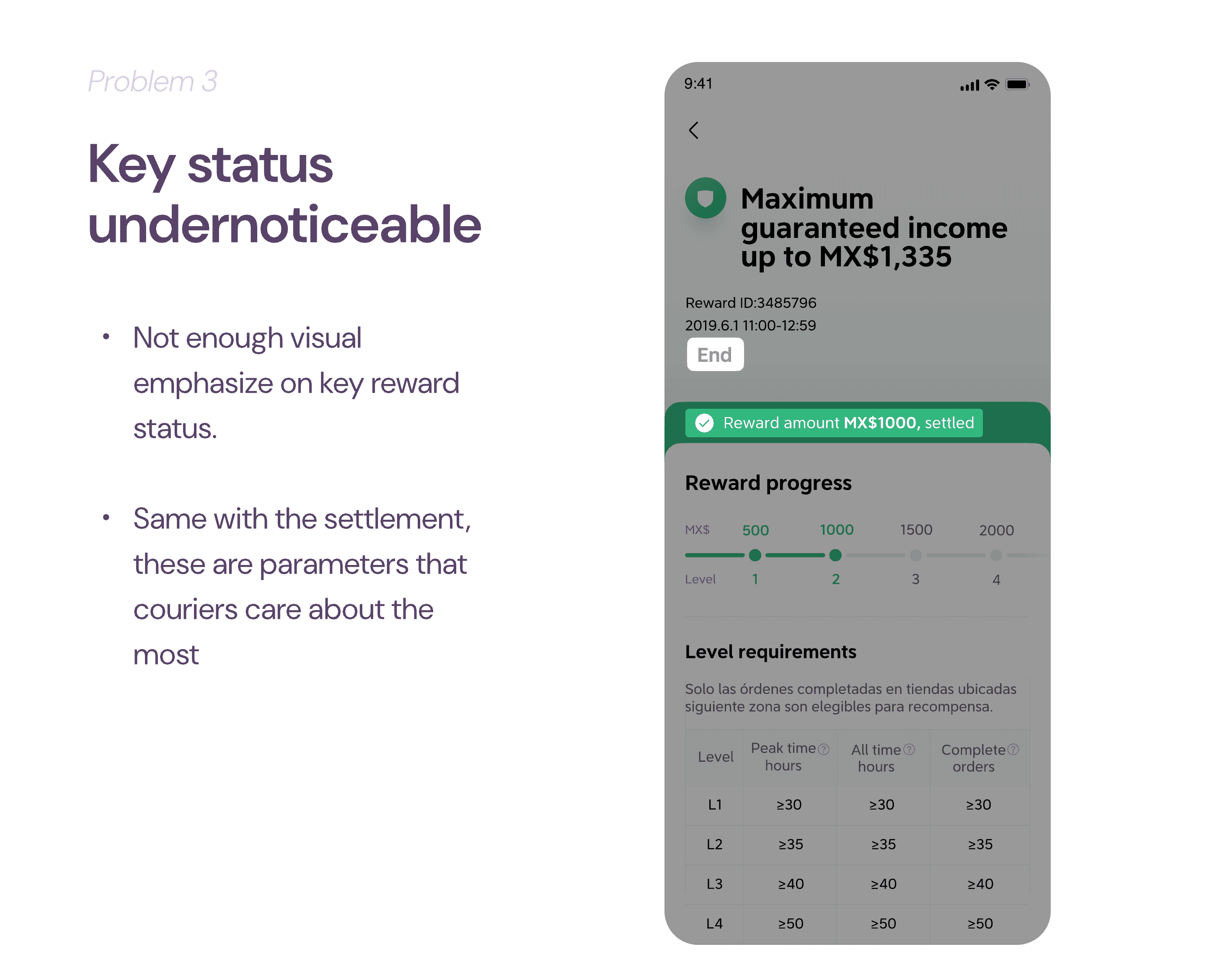 The project was started in a super small scale: adding labels in new design system to the guarantee reward settlement detail page to help couriers build clearer reward understanding.