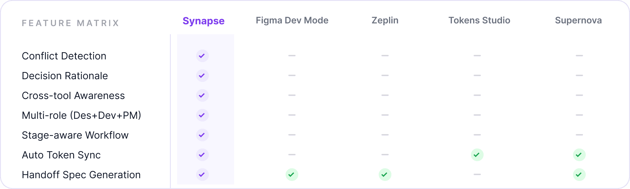 Synapse is the only tool answering "why it changed, who decided, and how it reaches everyone."