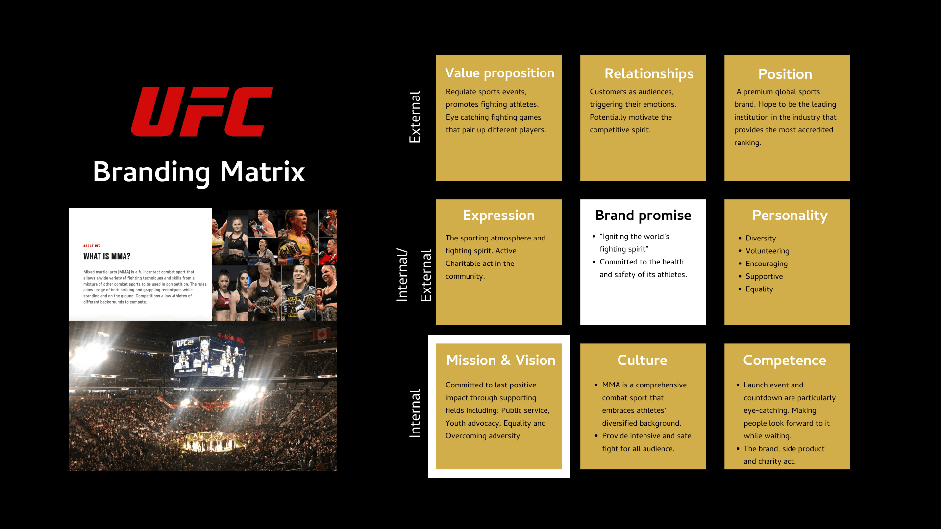 When researching about the brand, what really stood out to me was their commitment to the society. Some people see UFC as a so called "cruel sport," these socially responsible focuses are what being under estimated.